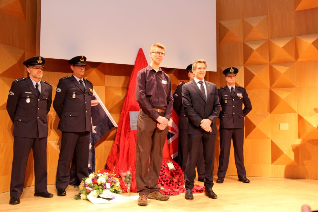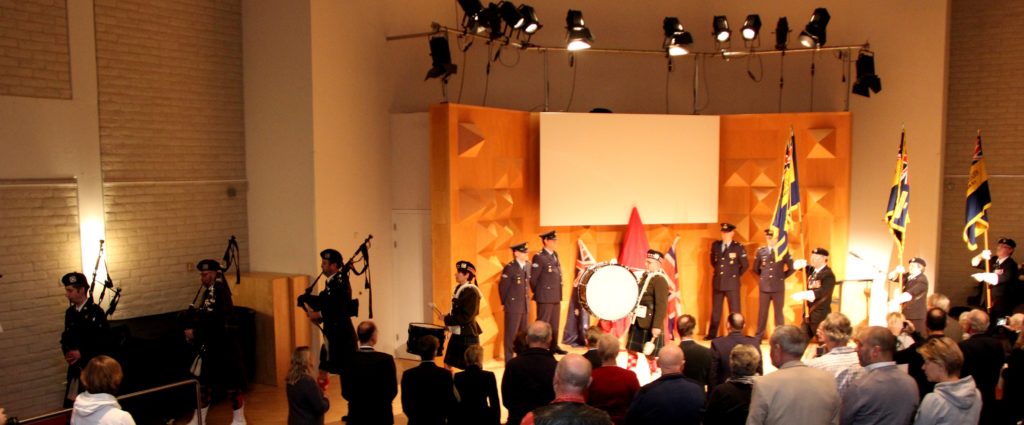 De onthulling van de plaquette in 2018. Mooie herinneringen aan een indrukwekkende ceremonie die werd bijgewoond door vertegenwoordigers van de Britse en Australische ambassades, de burgemeester van Enschede en de standaard dragers van de Royal British Legion.