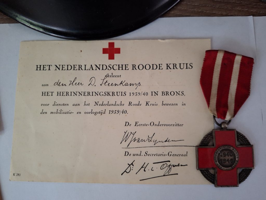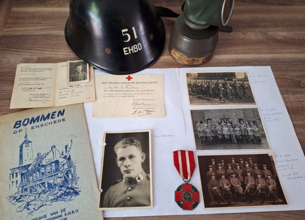 Enkele jaren geleden schonk de zoon van Daniël zijn EHBO identiteitsbewijs aan onze collectie. Door een toevallige samenloop van omstandigheden konden we afgelopen jaar de helm en het gasmasker van Daniël overnemen van Collectie Honger naar Bevrijding. En deze week was de set weer helemaal compleet toen de zoon van Daniël ons zijn medaille en oorkonde spontaan toestuurde.