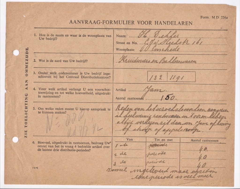 Opvallend is de notitie op het aanvraag formulier voor handelaren dat de omzet een stuk hoger was dan de ingeleverde bonnen.