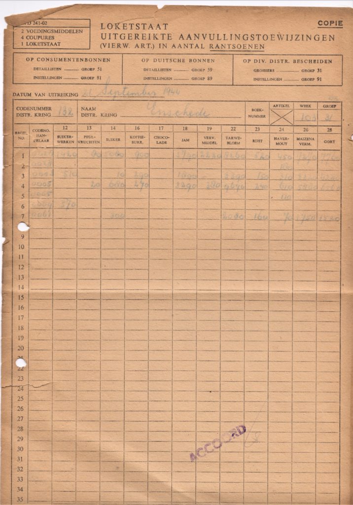 De verdeling van de benodigde bonnen en het toekennen van voorraden leverde een behoorlijke administratie op.