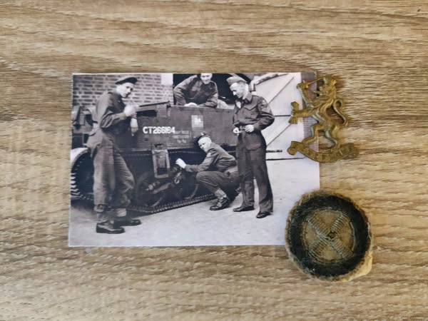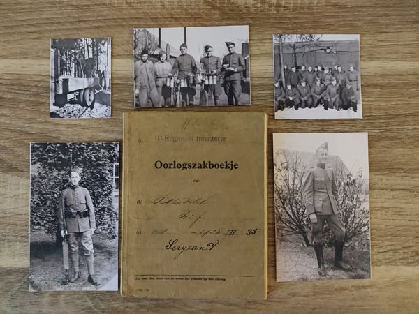 Enkele van de giften die we eind 2022 mochten ontvangen. De kepie en het zakboekje van Bernard Rolevink. Al eerder mochten we ook een aantal scans maken van de foto’s in het fotoalbum van sergeant Rolevink.
